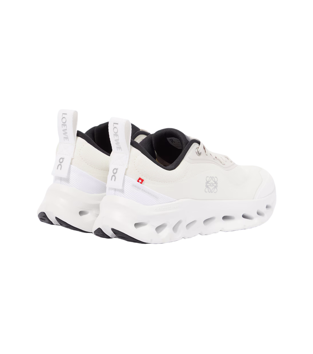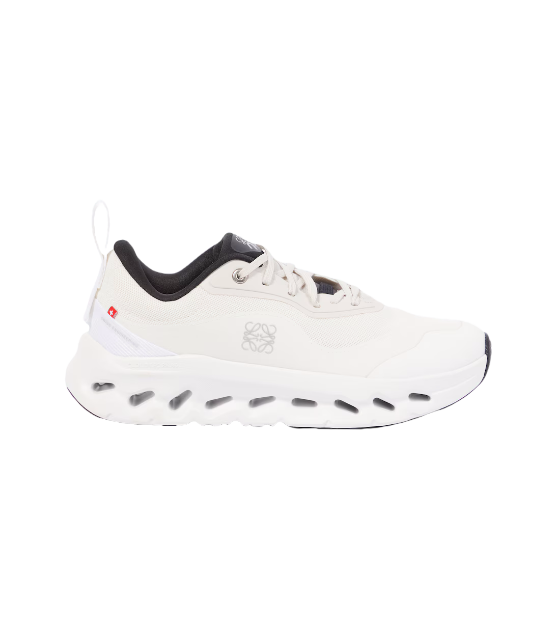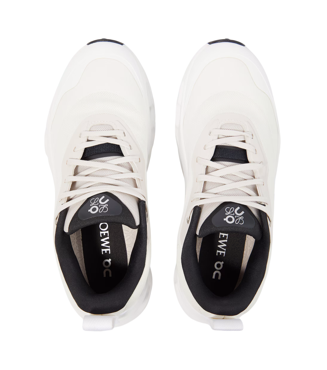 「クラウドティルト2.0」では、まるで雲の上を歩いているかのような快適な履き心地はそのままに、より機能性に優れた1足へとアップデート。パフォーマンスメッシュとウーブンテキスタイルを合わせた多層構造のアッパーに、ラバー製トゥガード、シュータンとシューカラーのパッドの追加などを行った。シグネチャーであるCloudTec® Phase テクノロジーがラバーポッドとともにやわらかな着地を実現します。タンにLOEWE x Onロゴ、ロゴ入りバックループで簡単に着脱。