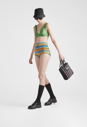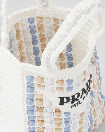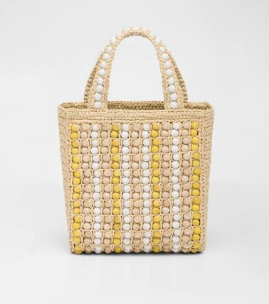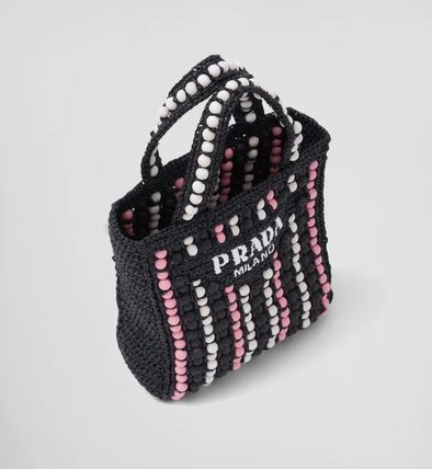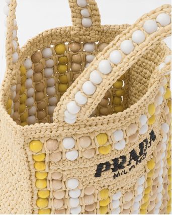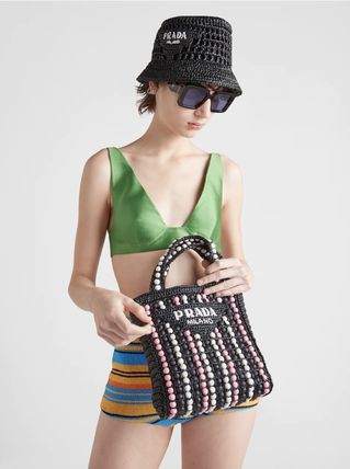 軽やかなラフィアを使用し ビーチバッグのコンセプトを再解釈した 夏らしいヴィンテージ感のあるトートバッグ。小ぶりで洗練されたシルエットに カラフルなウッドビーズで斬新なアクセントをプラスしました。プラダを象徴するトライアングルを新解釈してフロントに配し レタリングロゴ刺繍をあしらったデザイン。