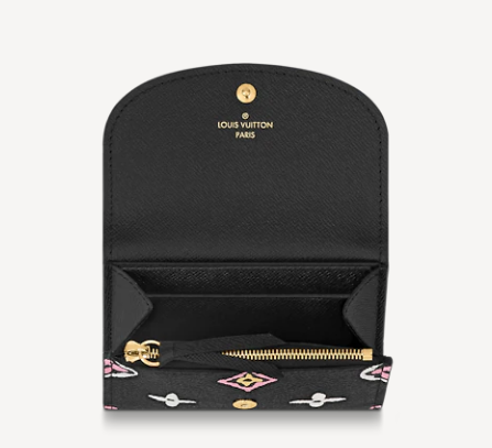 「ワイルド・アット・ハート」カプセル・コレクションに相応しく、アニマル・プリントから着想を得たモノグラム・キャンバスで再解釈した「ポルトモネ・ロザリ」。丸みを帯びたフラップは、の刻印入りのゴールドカラーのスナップボタンで開閉する仕立てです。ファスナー付きコインポケット、フラットポケット、2つのカードスロットを備えた内装も魅力です。