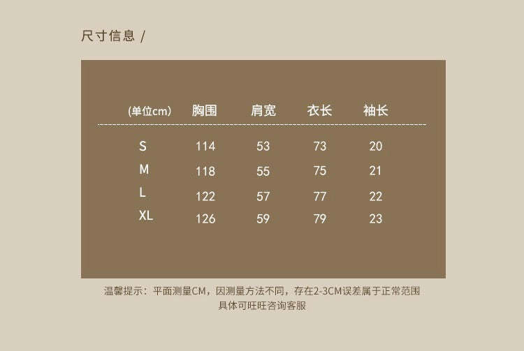 Size: S Length: 73 Bust: 114 Shoulder: 53 Sleeve: 20